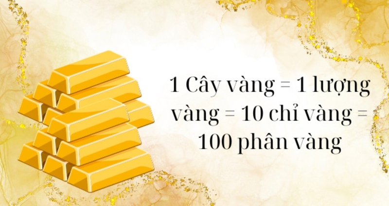 - 1 cây vàng = 1 lượng vàng = 10 chỉ vàng